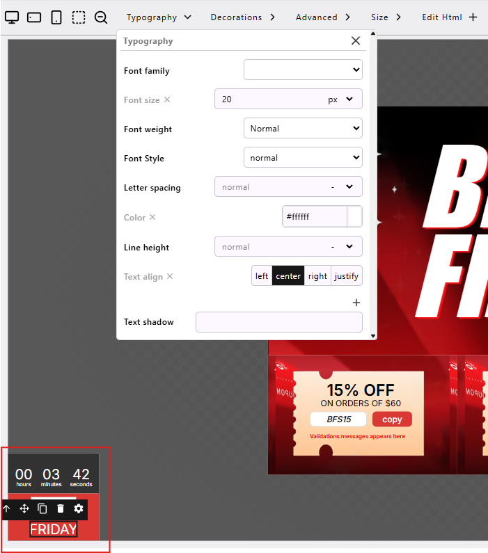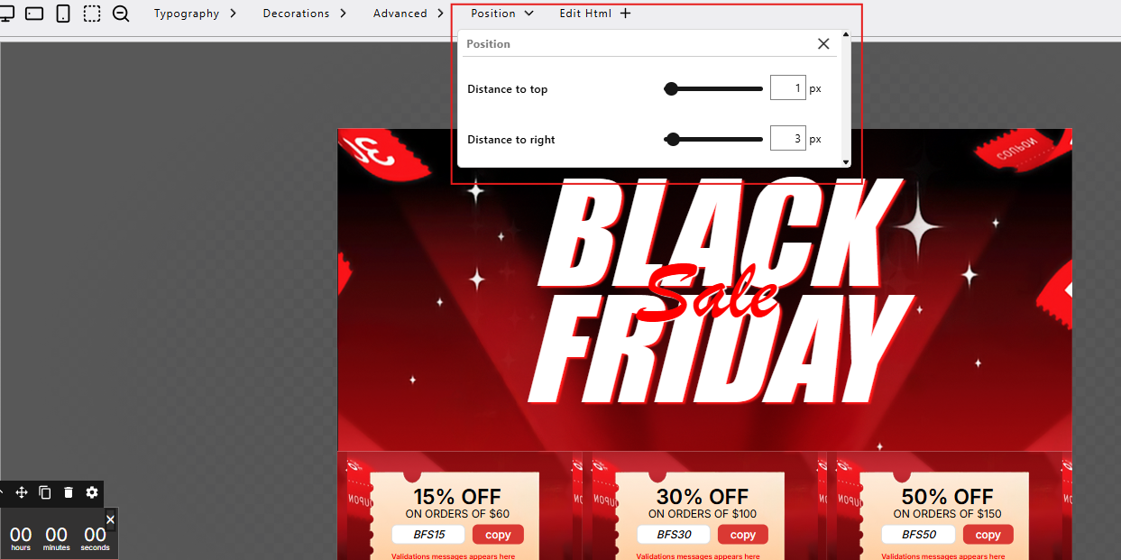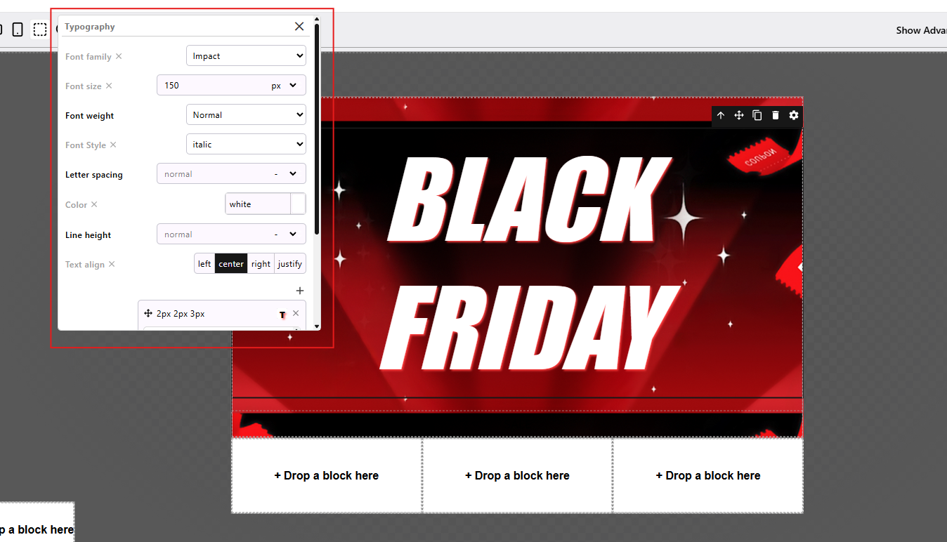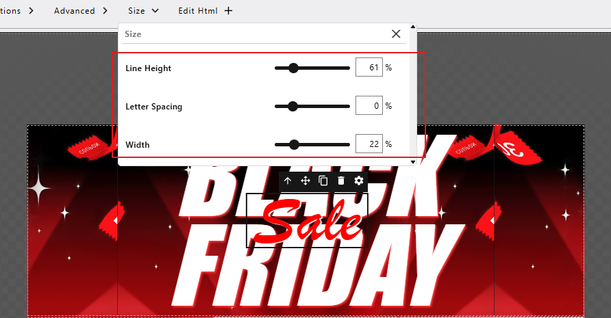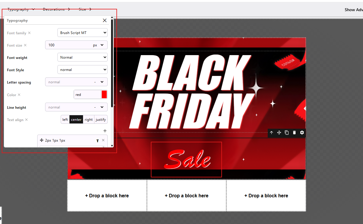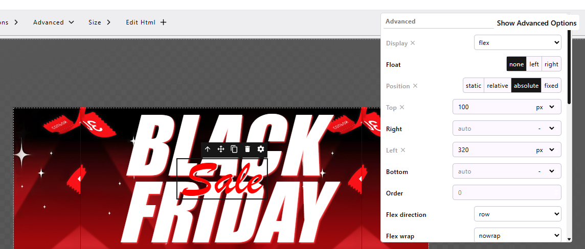 Then open Advanced Options to bring the SALE text in front of “Black Friday”.