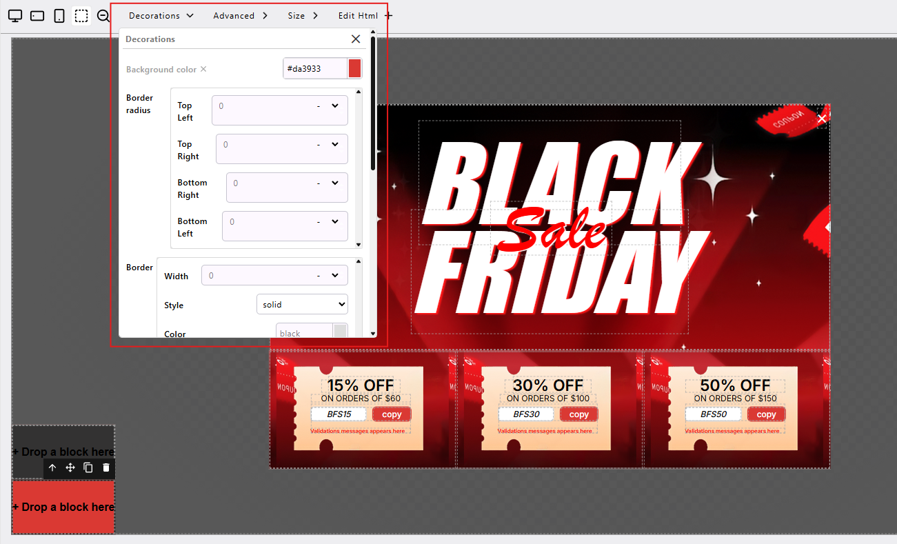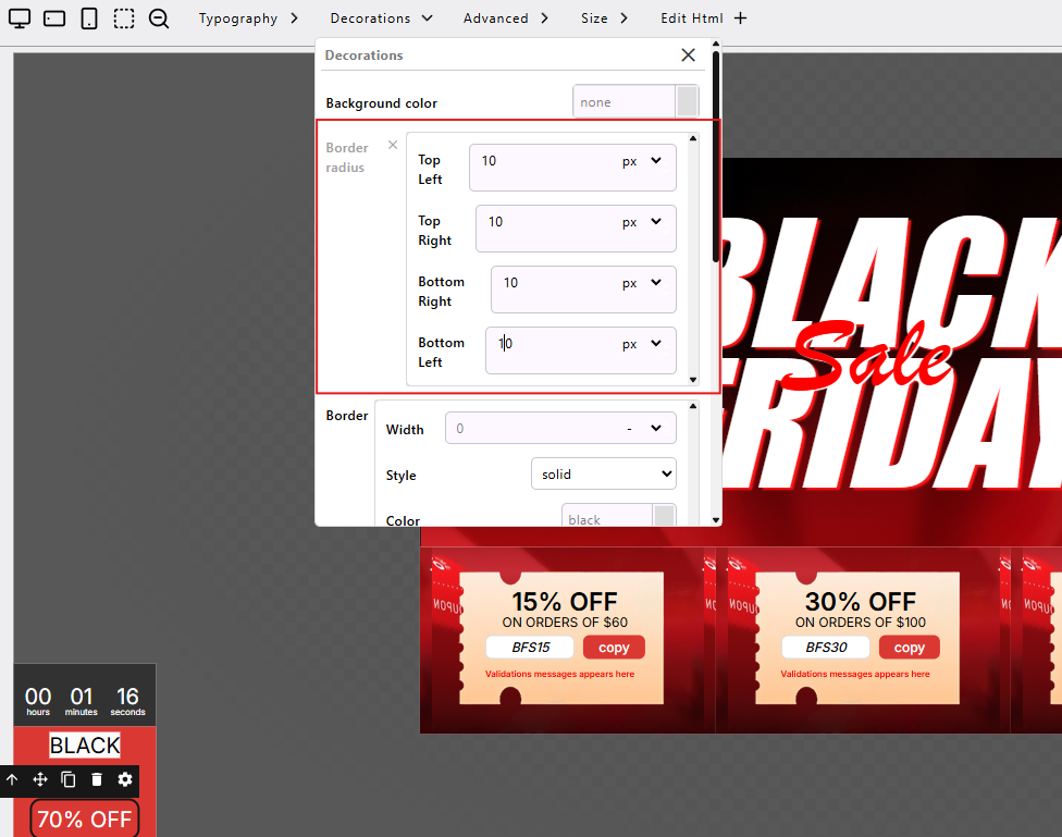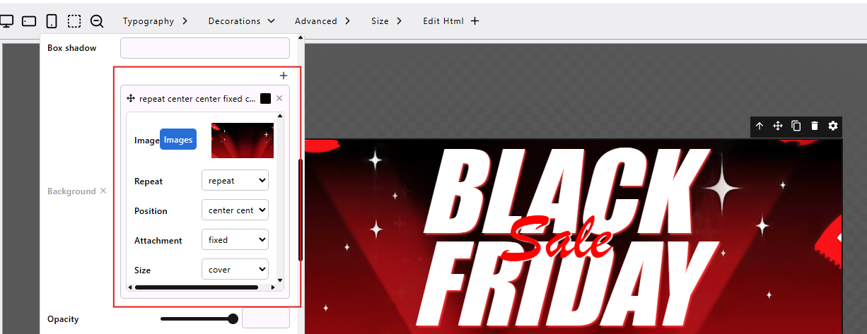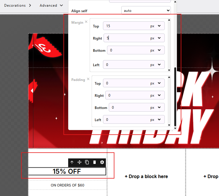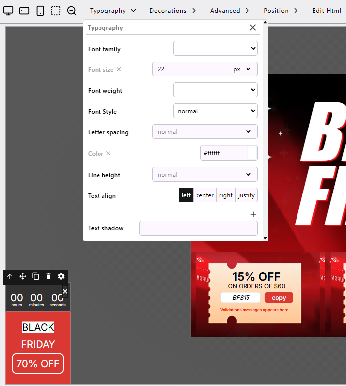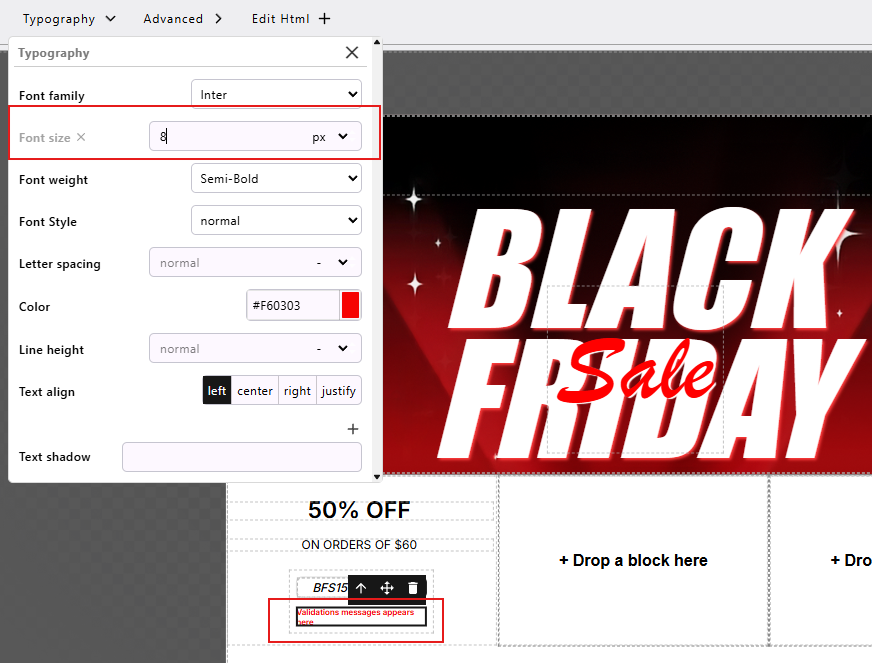 Then open Advanced Options to bring the SALE text in front of “Black Friday”.