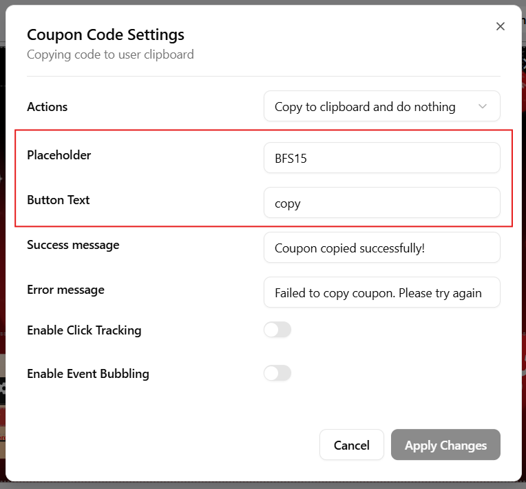 - Enter your code (e.g., BFS15) and copy it for the button text.