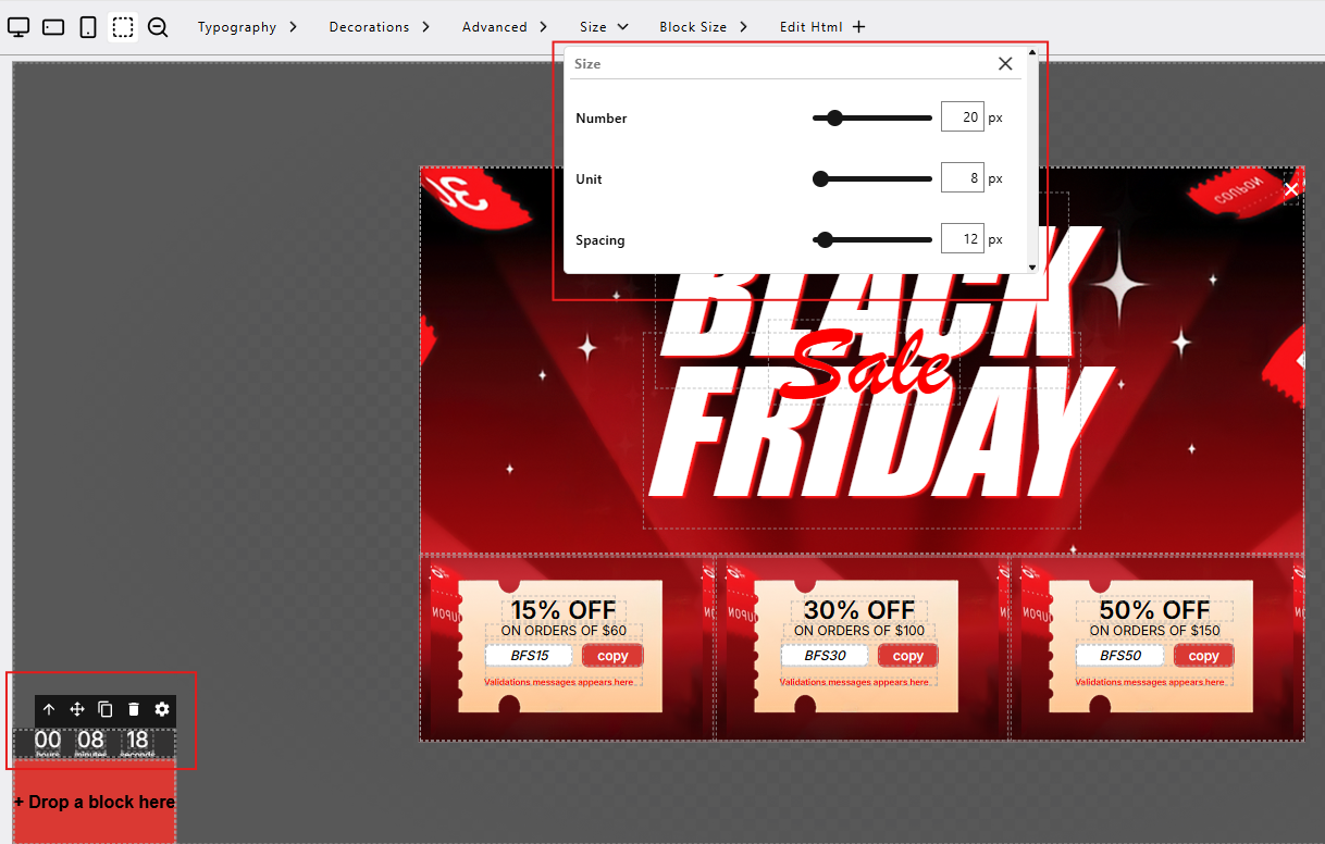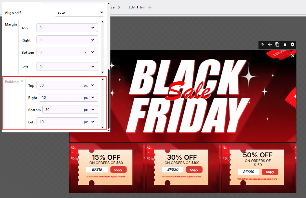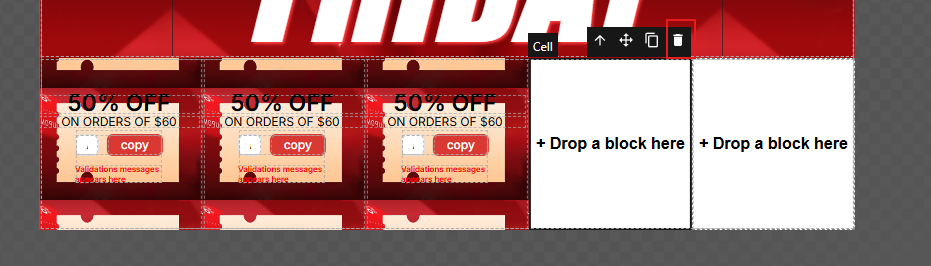 Delete Empty Blocks After deleting, your layout should show three neat coupon rows and adjust the content of each coupon code