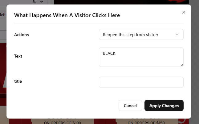 Background Color Set the actions of all sticker elements to Reopen this step from sticker.