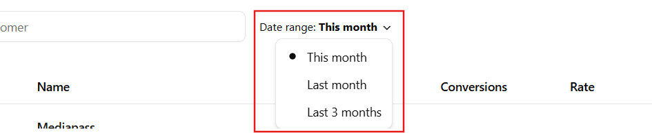 Choose the time period for the data displayed - for example, "This month" or "Last 3 Months." This helps you focus on recent activity or compare performance over time.