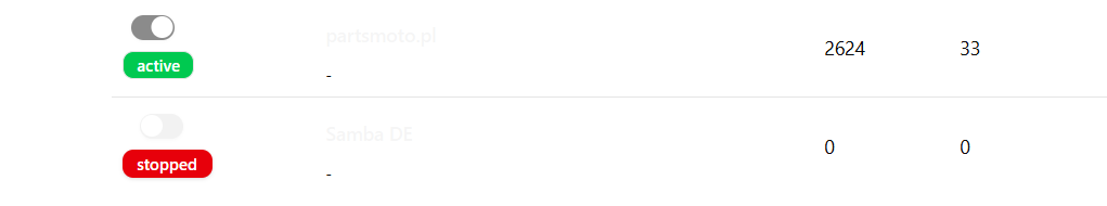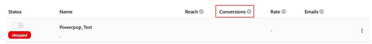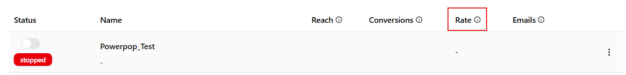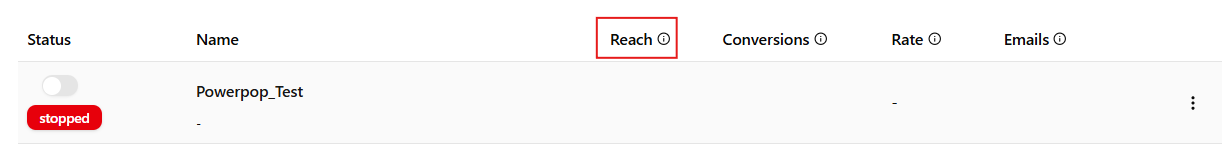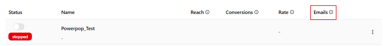 - Stopped: The toggle is off and marked in red - the campaign is currently paused.