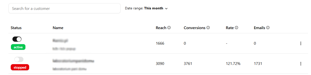 Here you’ll find a list of customers assigned to you. These are the businesses or websites for which you’re running conversion optimization campaigns using Powerpop.