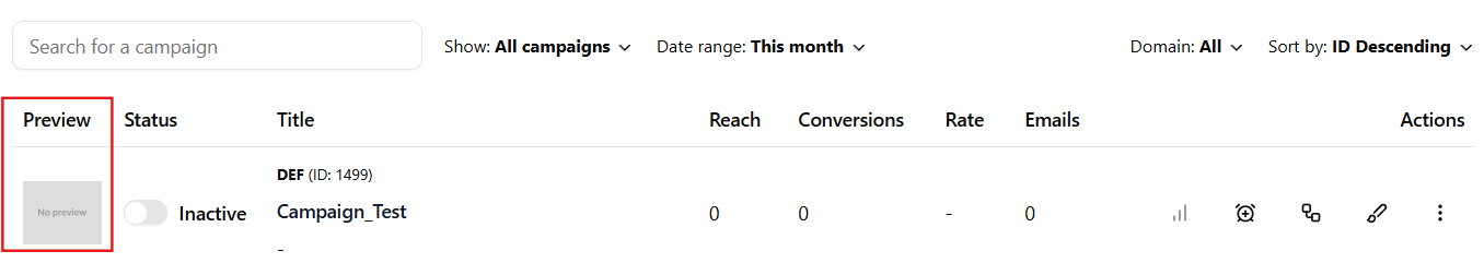 - Preview – A visual snapshot of the popup. If not available, it shows "No preview."