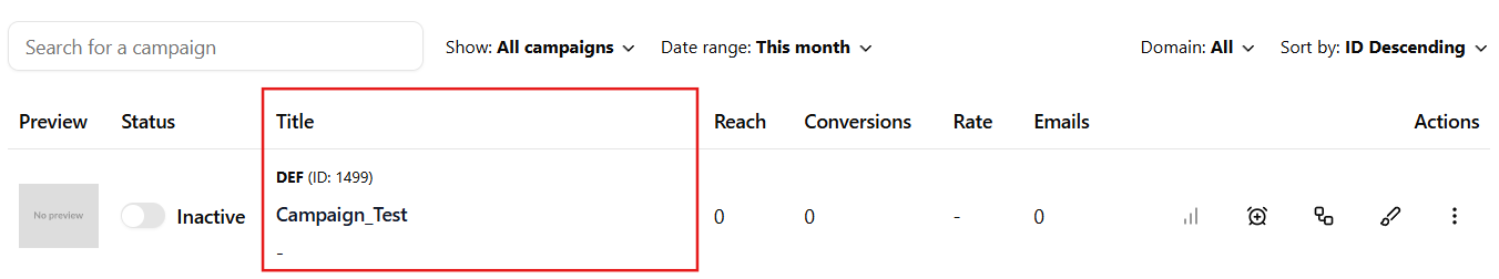 - Title – The name of your campaign. Helpful for identifying and managing multiple versions or tests.