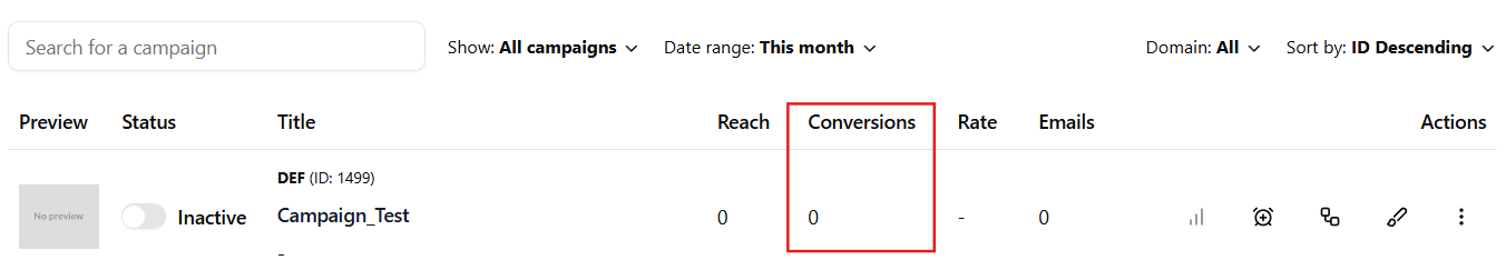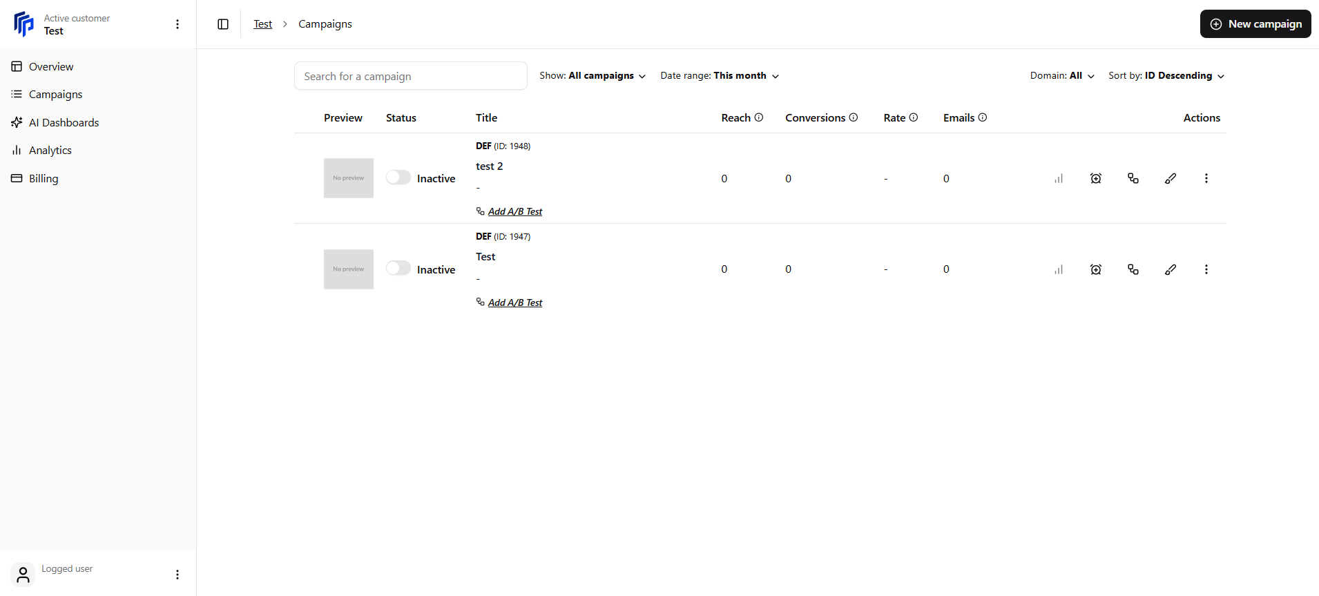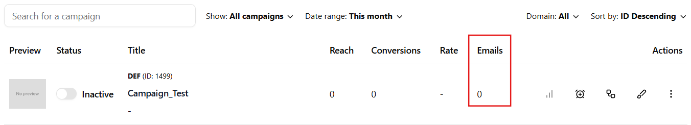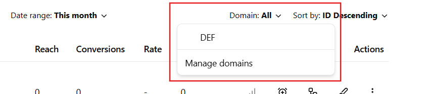 - Domains - View campaigns for a specific domain or manage connected domains.