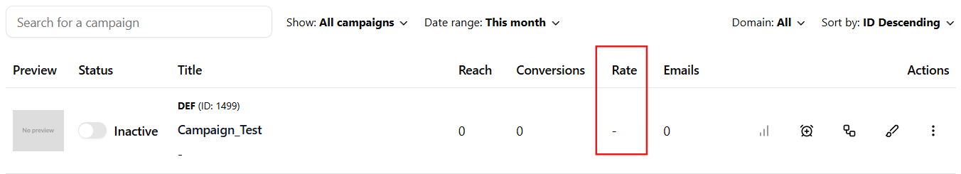 - Rate - Shows how effective your campaign is at turning views into actions.