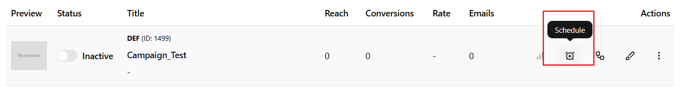 - Schedule – Set or update the campaign's display timing.