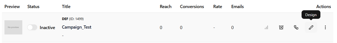 - Your campaign will now be displayed on the dashboard, ready for further configuration.