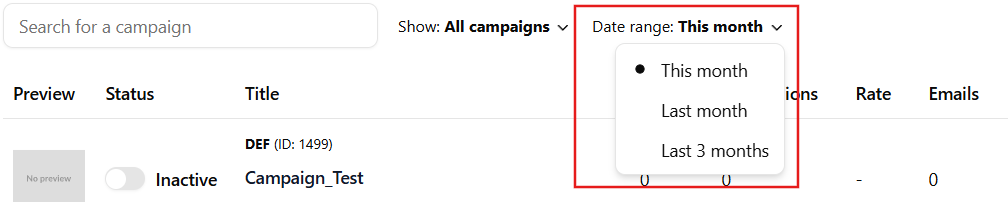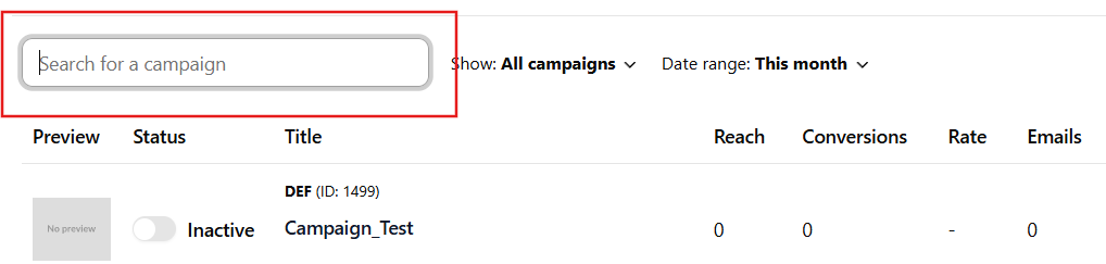 - Search Campaigns - Quickly find a specific campaign by entering keywords in the Search for a campaign bar.