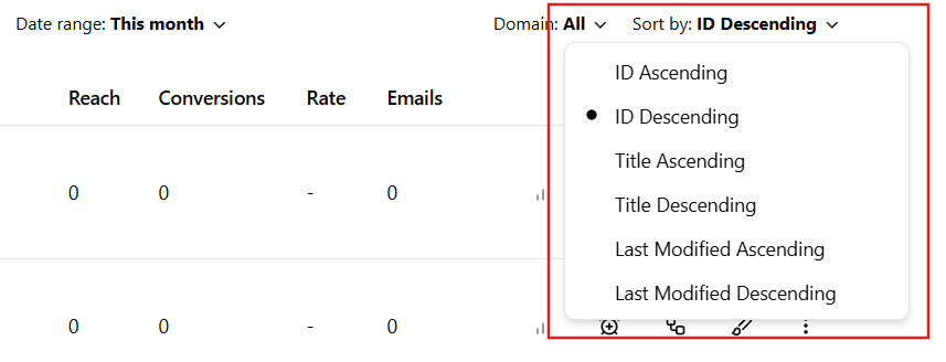 - Sort by - Organize the campaign list based on your preferred metric.