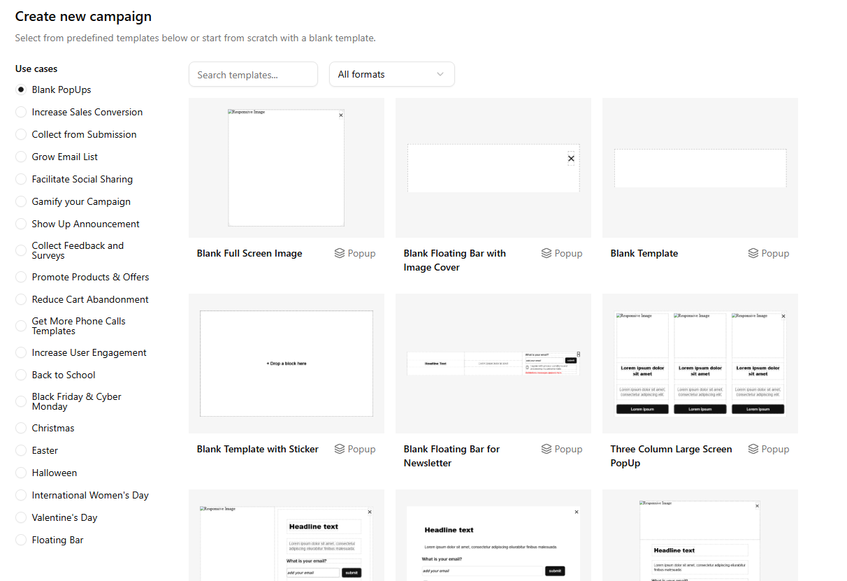 The Campaigns Dashboard is your central hub for managing all popup campaigns. From here, you can easily track performance, adjust settings, and optimize each campaign to improve engagement and conversions. Whether you’re reviewing analytics, updating designs, or launching new popups, the dashboard gives you complete control over your marketing activities—all in one organized view.