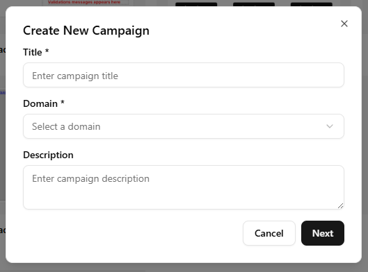 - In the Create New Campaign popup, fill in the following details:
