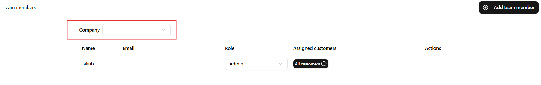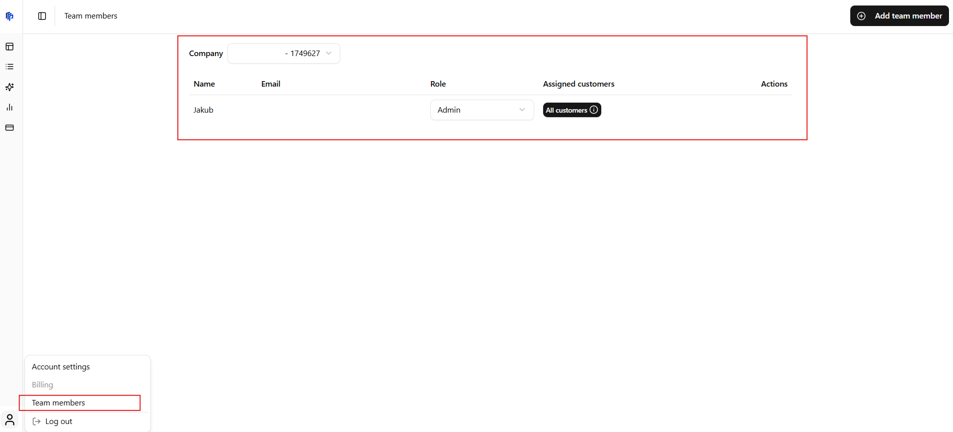 The Team Members section allows you to manage users in your organization, assign their roles, and control their access to customers.