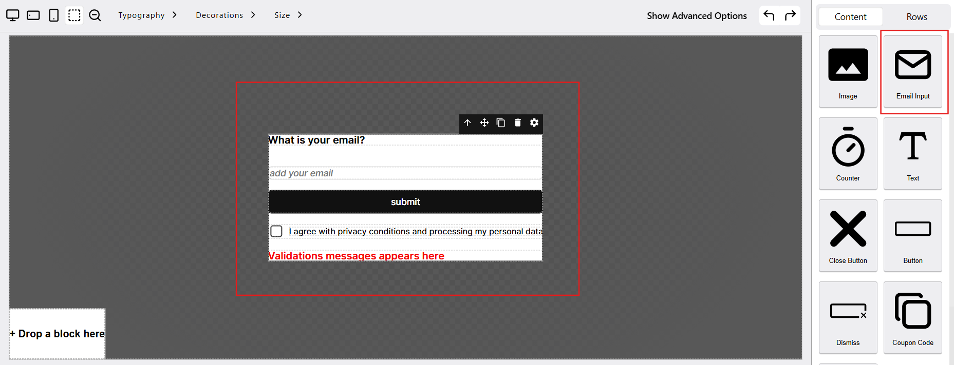 You can also drag and reposition the entire email input block anywhere in your popup to fit your design preferences.
