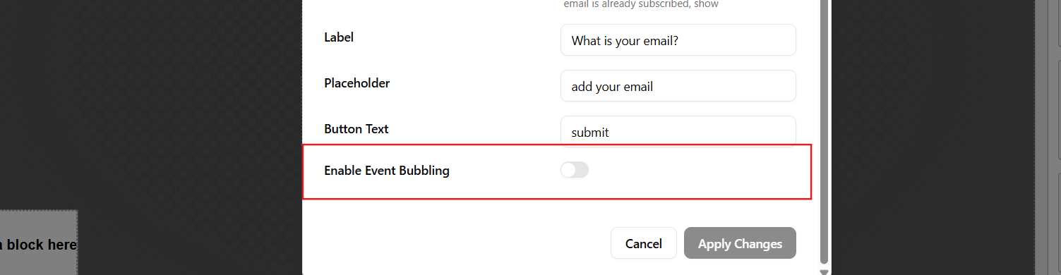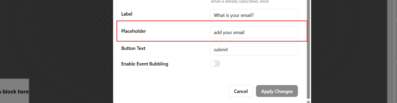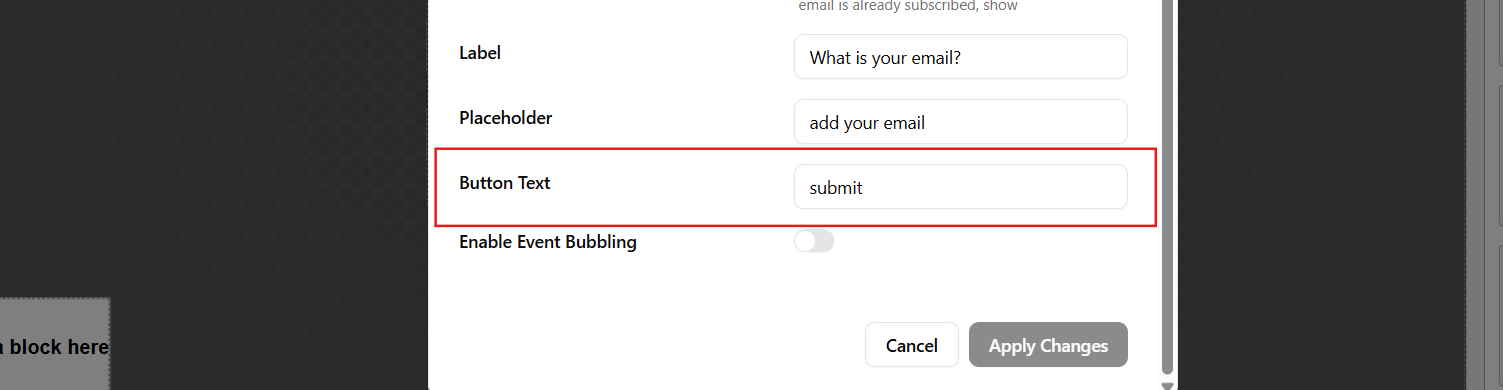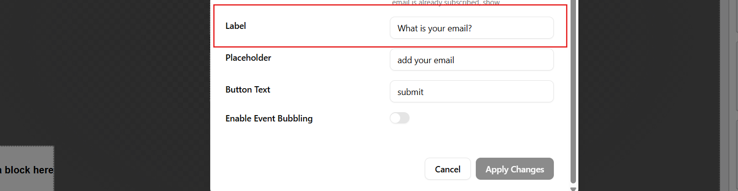 Click Apply Changes to save all the modifications you made to your email input settings. Your updates will immediately reflect in the popup editor.