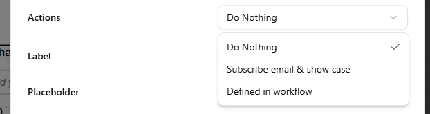 - Actions – Choose what happens when a visitor submits their email (e.g., Subscribe email & show case).