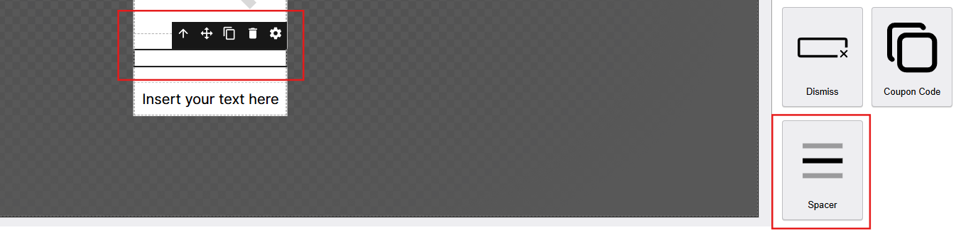 The Spacer content is used to create space between elements in your popup design. It helps improve layout, readability, and overall design balance by separating content visually.