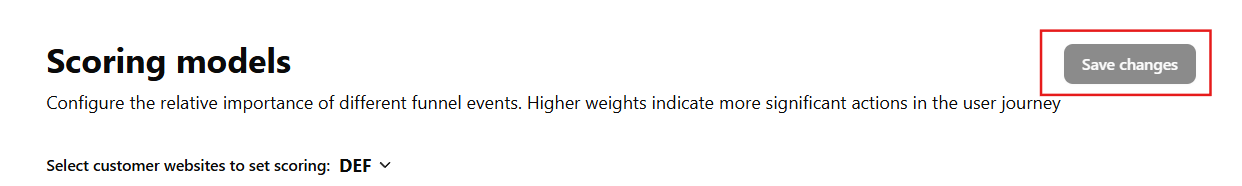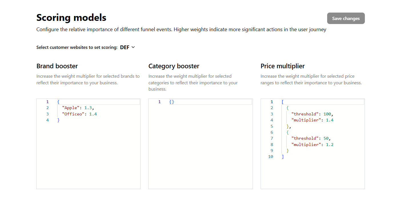 The Scoring Models section lets you set how much different factors—such as brand, category, or price -affect the importance of customer actions.